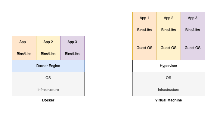 즉, Docker는 Guest OS가 없기 때문에 VirtualMachine에 비해 훨씬 가볍습니다.