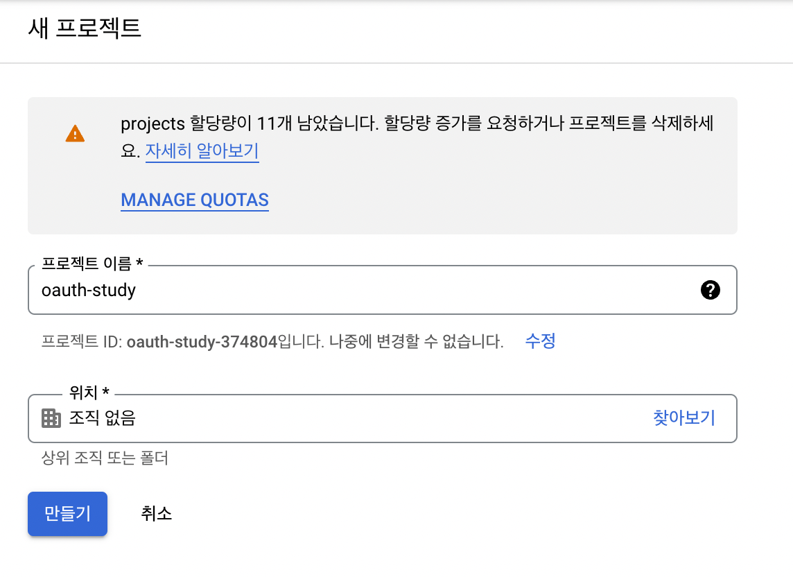 우선 Google Cloud에 접속해 프로젝트를 등록해야 합니다.